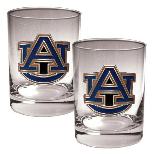 The officially licensed NCAA Auburn Tigers 2 piece 14 ounce rocks glass set is decorated with hand-crafted metal team logos by Great American Products. The set is the perfect addition to your bar or game room! Hand wash.