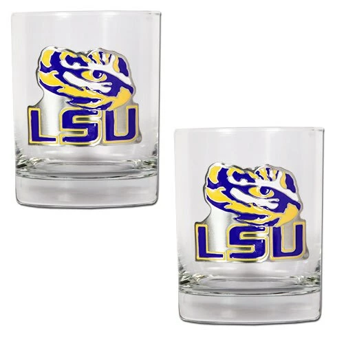The officially licensed NCAA Louisiana State Tigers 2-piece 14-ounce rocks glass set is decorated with hand-crafted metal team logos by Great American Products. The set is the perfect addition to your bar or game room!