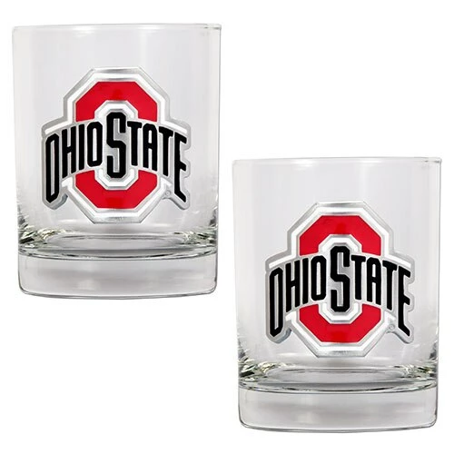 The officially licensed NCAA Ohio State Buckeyes 2-piece 14-ounce rocks glass set is decorated with hand-crafted metal team logos by Great American Products. The set is the perfect addition to your bar or game room!