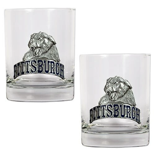 The officially licensed NCAA Pittsburgh Panthers 2 piece 14 ounce rocks glass set is decorated with hand crafted metal team logos. The set is a perfect addition to your bar! Manufactured by Great American Products. Hand wash.