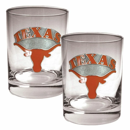 The officially licensed NCAA Texas Longhorns 2-piece 14-ounce rocks glass set is decorated with hand-crafted metal team logos by Great American Products. The set is the perfect addition to your bar or game room!