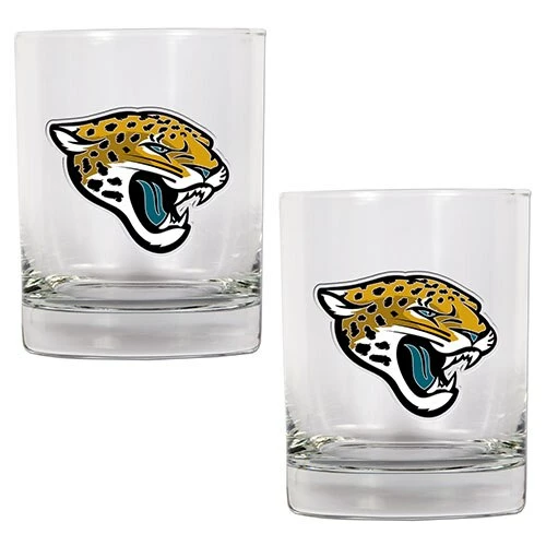 The officially licensed NFL Jacksonville Jaguars 2-piece 14-ounce rocks glass set is decorated with hand crafted metal team logos. The set is a perfect addition to your bar! Manufactured by Great American Products.