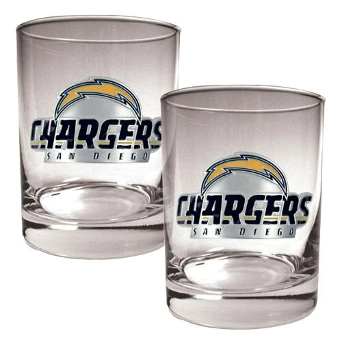 The officially licensed NFL San Diego Chargers 2-piece 14-ounce rocks glass set is decorated with hand crafted metal team logos. The set is a perfect addition to your bar! Manufactured by Great American Products.