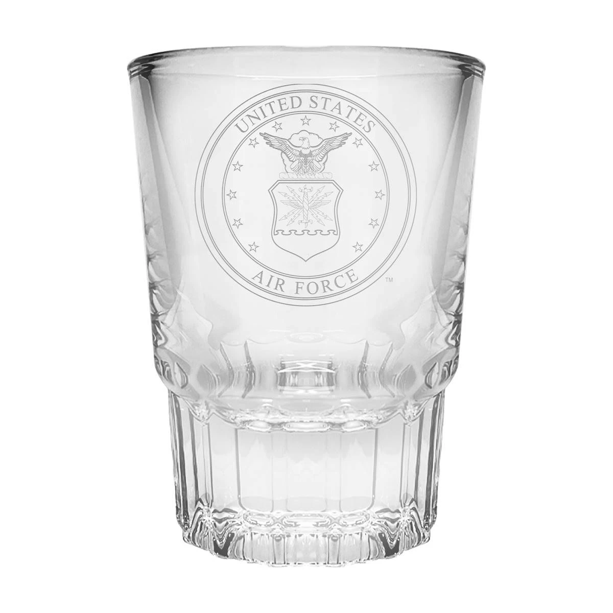 The U.S. Air Force prism shot glass is 2 ounces and features laser-etched graphics. Manufactured by Great American Products.