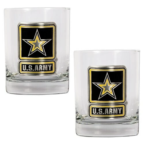 The U.S. Military U.S. Army set of Officially Licensed Rocks Glasses decorated with hand-crafted metal emblems. This 14 oz. glasses are the perfect complement to your bar or game room decor. Manufactured by Great American Products.