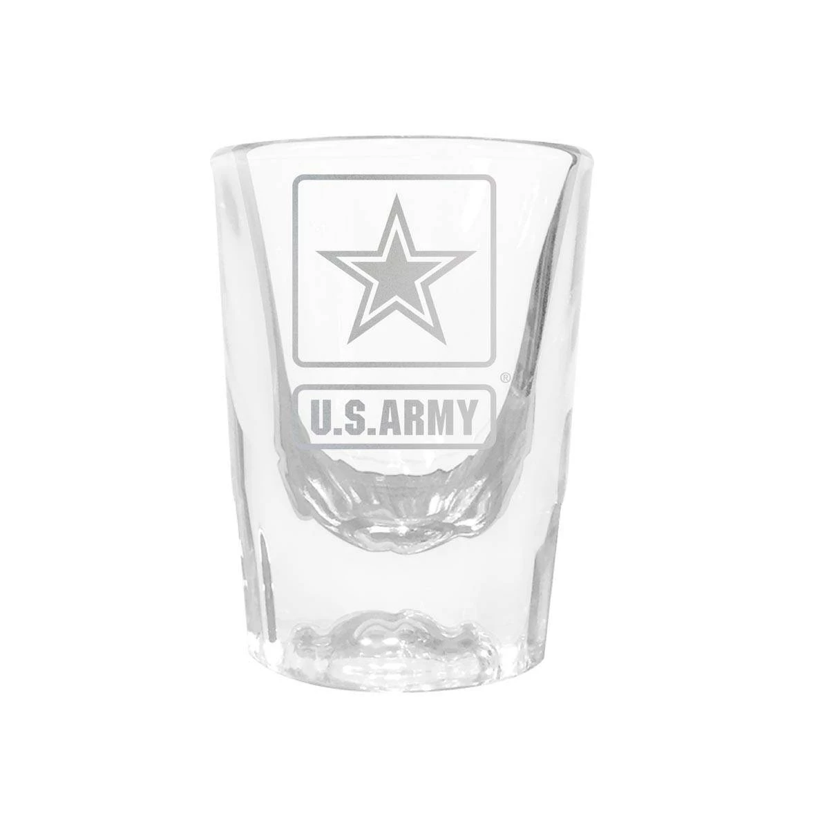 The U.S. Army prism shot glass is 2 ounces and features laser-etched graphics. Manufactured by Great American Products.