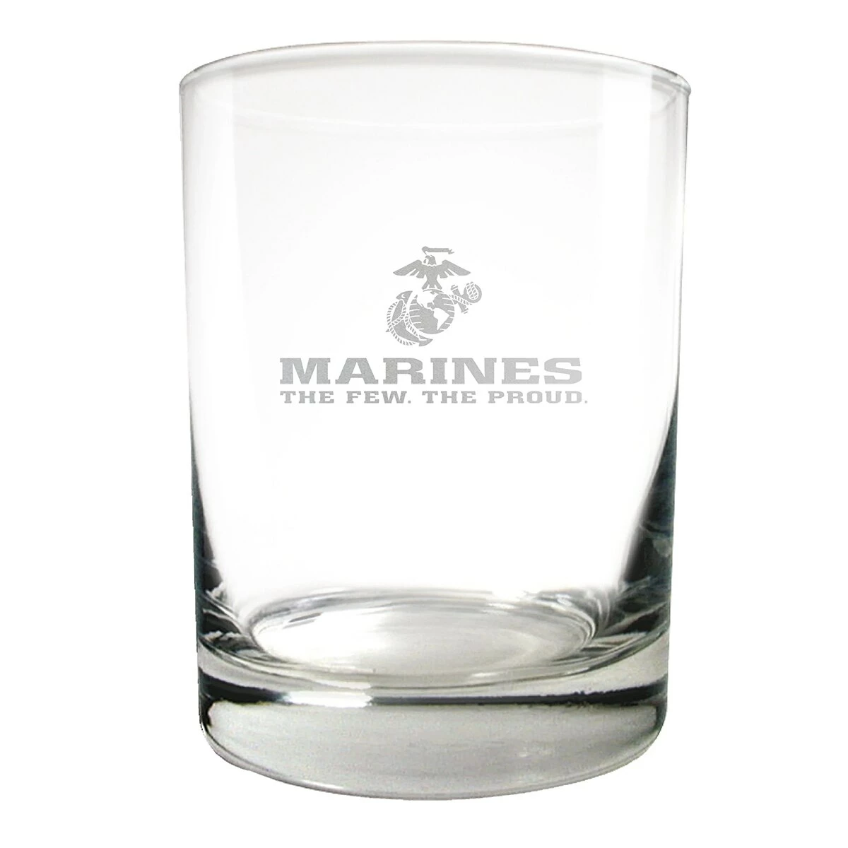 This U.S. Marines rocks glass is 15-ounce and features laser-etched graphics. Manufactured by Great American Products.