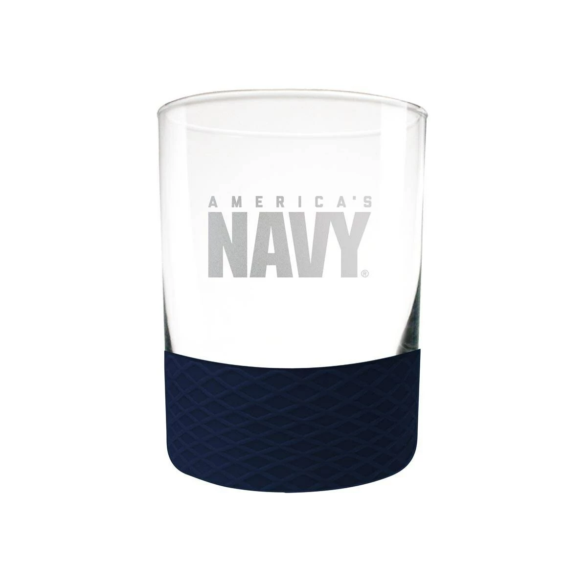 The U.S. Navy Commissioner rocks glass is 15 ounces, features laser etched graphics and includes a silicone grip in Branch color. Manufactured by Great American Products.