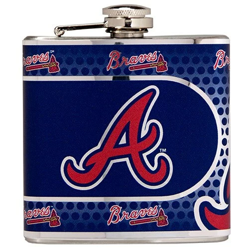 This officially licensed MLB Atlanta Braves 6oz Stainless Steel flask is manufactured by great American products, and is decorated in high definition metallic team graphics. Hand wash. Dimensions: 4”H x 4.5”W x 1.25”D.