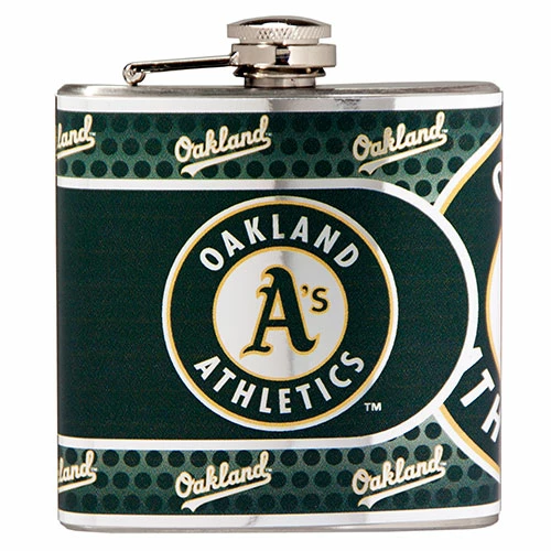 This officially licensed MLB Oakland Athletics 6oz. Stainless Steel flask is manufactured by great American products, and is decorated in high definition metallic team graphics. Hand wash. Dimensions: 4βH x 4.5βW x 1.25 Dβ.
