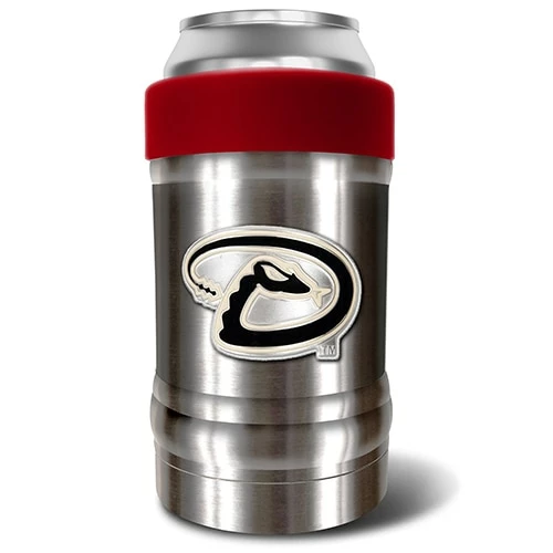 This MLB Arizona Diamondbacks vacuum insulated can holder is double-wall vacuum insulated and is made to keep your favorite beverage icy cold from start to finish. Its design features an ergonomic grip with a screw on color accented collar that locks in your beverage container and keeps the perfect temperature for optimal drinking pleasure. Manufactured by Great American Products. Made with 18/8 kitchen grade stainless steel.