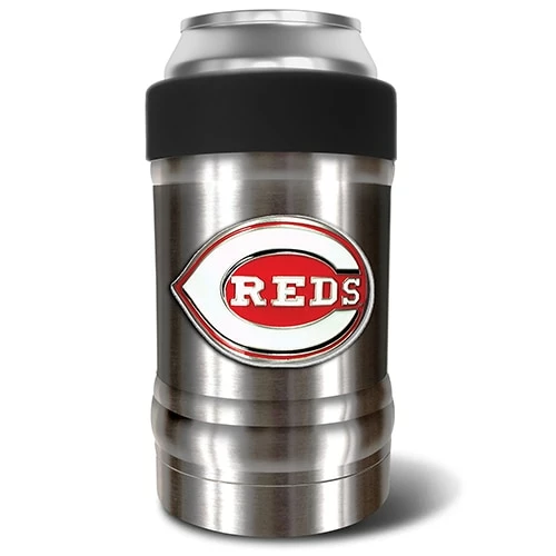 This MLB Cincinnati Reds vacuum insulated can holder is double-wall vacuum insulated and is made to keep your favorite beverage icy cold from start to finish. Its design features an ergonomic grip with a screw on color accented collar that locks in your beverage container and keeps the perfect temperature for optimal drinking pleasure. Manufactured by Great American Products.