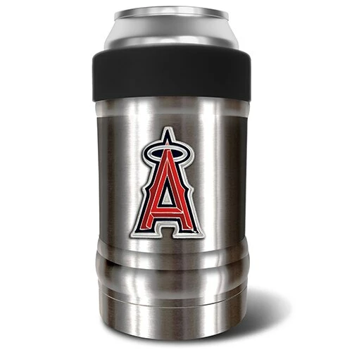 This MLB Los Angeles Angels vacuum insulated can holder is double-wall vacuum insulated and is made to keep your favorite beverage icy cold from start to finish. Its design features an ergonomic grip with a screw on color accented collar that locks in your beverage container and keeps the perfect temperature for optimal drinking pleasure. Manufactured by Great American Products. Made with 18/8 kitchen grade stainless steel.