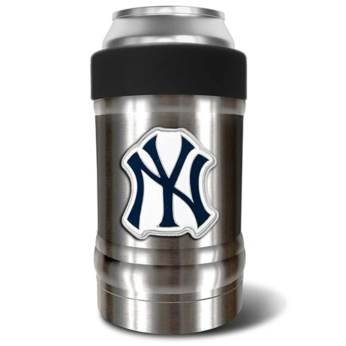 This MLB New York Yankees vacuum insulated can holder is double-wall vacuum insulated and is made to keep your favorite beverage icy cold from start to finish. Its design features an ergonomic grip with a screw on color accented collar that locks in your beverage container and keeps the perfect temperature for optimal drinking pleasure. Manufactured by Great American Products. Made with 18/8 kitchen grade stainless steel.
