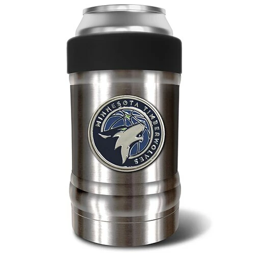 This NBA Minnesota Timberwolves vacuum insulated can holder is double-wall vacuum insulated and is made to keep your favorite beverage icy cold from start to finish. Its design features an ergonomic grip with a screw on color accented collar that locks in your beverage container and keeps the perfect temperature for optimal drinking pleasure. Manufactured by Great American Products. Made with 18/8 kitchen grade stainless steel.