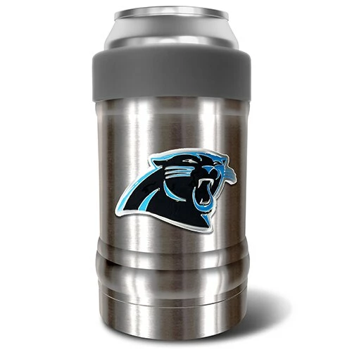 This NFL Carolina Panthers vacuum insulated can holder is double-wall vacuum insulated and is made to keep your favorite beverage icy cold from start to finish. Its design features an ergonomic grip with a screw on color accented collar that locks in your beverage container and keeps the perfect temperature for optimal drinking pleasure. Manufactured by Great American Products. Hand wash only. Made with 18/8 kitchen grade stainless steel.