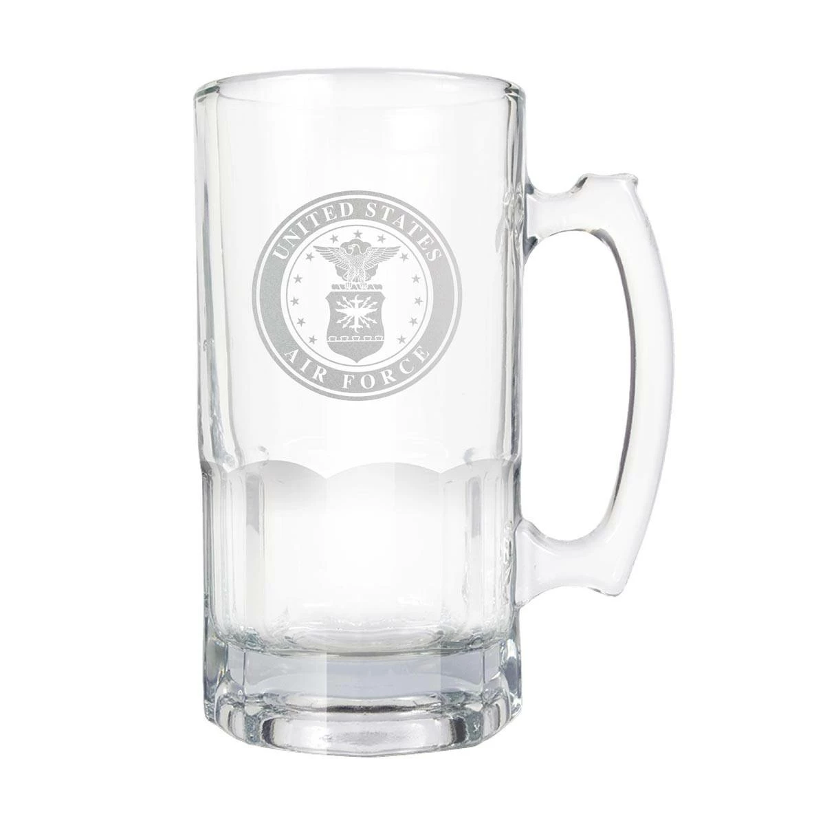 The U.S. Air Force macho mug is the largest glass mug holding 1 liter of awesome goodness. Features laser etched graphics. Manufactured by Great American Products.