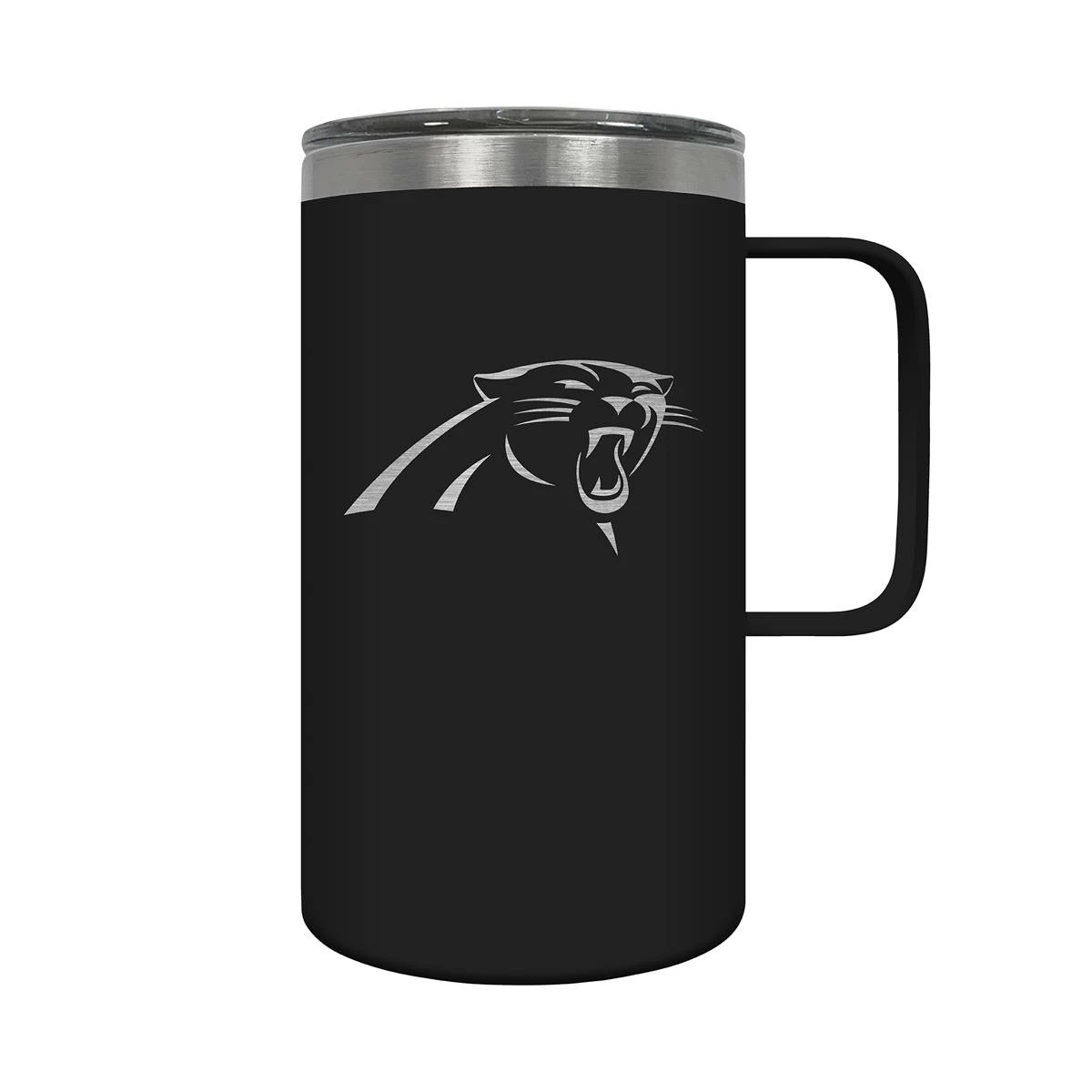This Great American Products 18-ounce Carolina Panthers hustle mug comes in team colors so you can show your team pride wherever you go. It is made of vacuum insulated stainless steel with a spill-resistant lid and features laser etched team graphics.