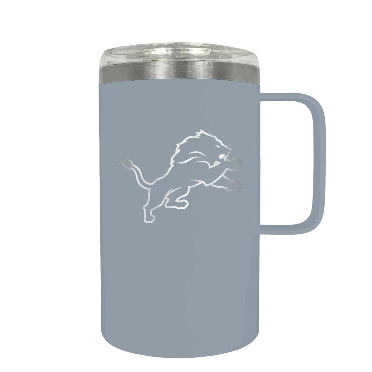 This Great American Products 18-ounce Detroit Lions hustle mug comes in team colors so you can show your team pride wherever you go. It is made of vacuum insulated stainless steel with a spill-resistant lid and features laser etched team graphics.