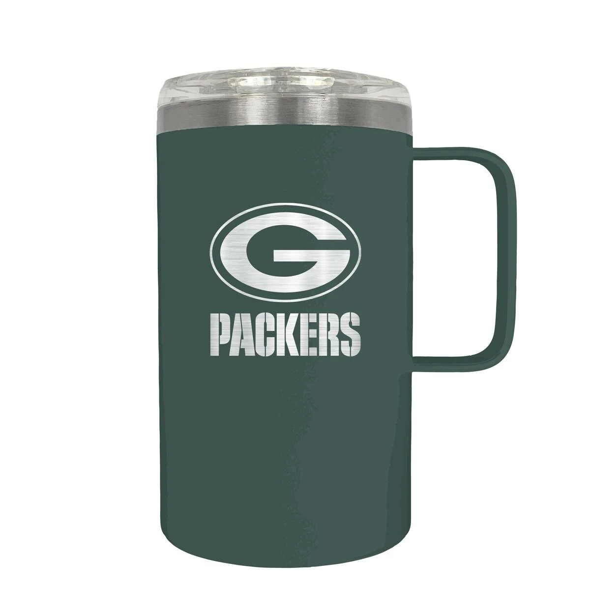 This Great American Products 18-ounce Green Bay Packers hustle mug comes in team colors so you can show your team pride wherever you go. It is made of vacuum insulated stainless steel with a spill-resistant lid and features laser etched team graphics.