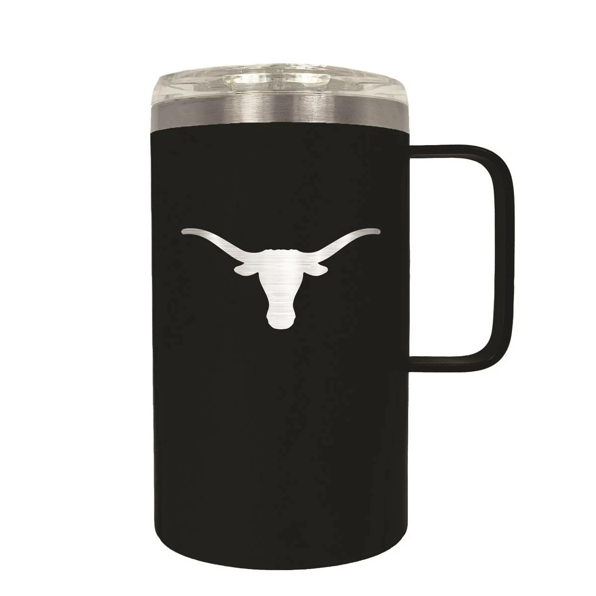 This Great American Products 18-ounce Texas Longhorns hustle mug comes in team colors so you can show your team pride wherever you go. It is made of vacuum insulated stainless steel with a spill-resistant lid and features laser etched team graphics.