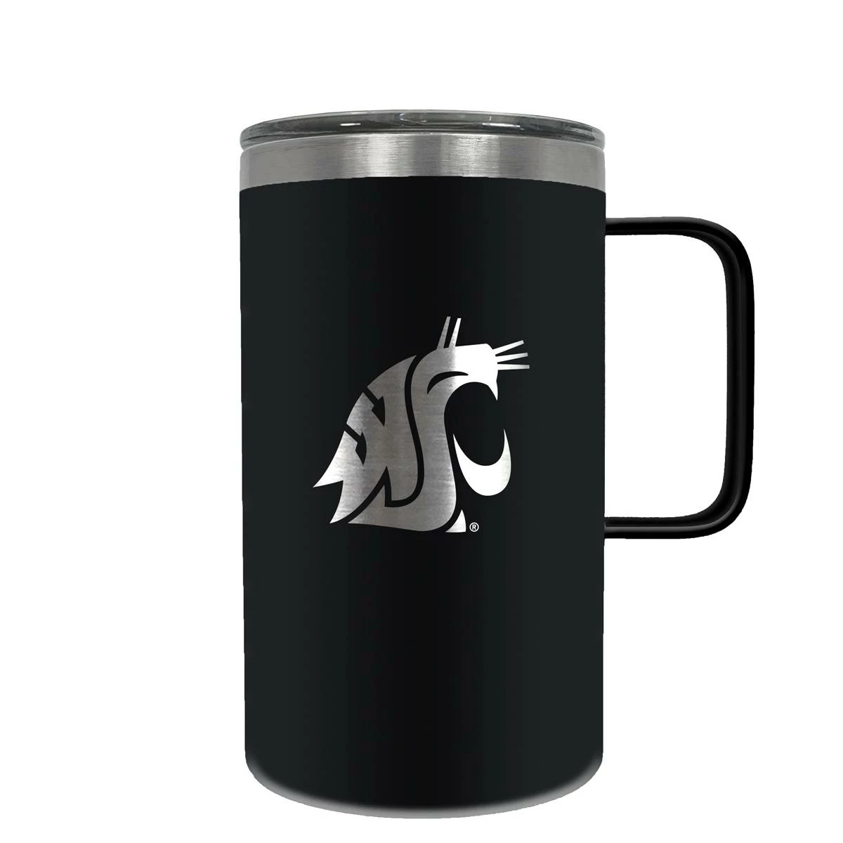This Great American Products 18-ounce Washington State Cougars hustle mug comes in team colors so you can show your team pride wherever you go. It is made of vacuum insulated stainless steel with a spill-resistant lid and features laser etched team graphics.