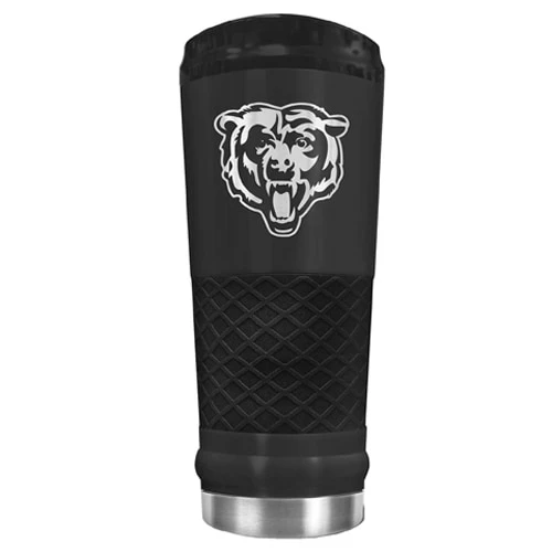 This NFL Chicago Bears powder coated vacuum insulated stainless steel tumbler will show your team spirit! It features laser etched graphics with black silicone grip and spill resistant lid. This tumbler will keep your drinks cold or hot for hours! Created by Great American Products.