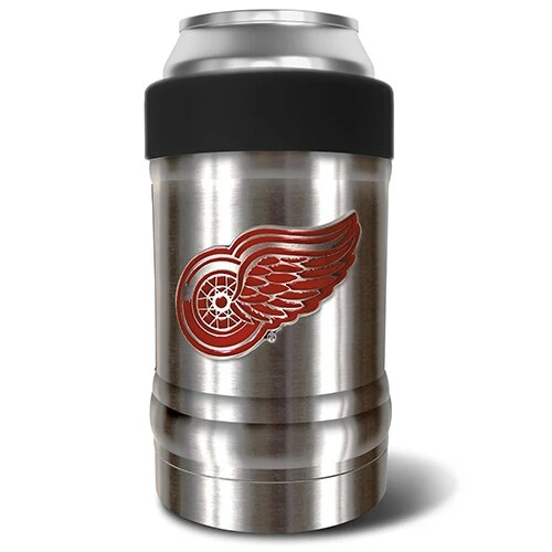 This NHL Detroit Red Wings vacuum insulated can holder is double-wall vacuum insulated and is made to keep your favorite beverage icy cold from start to finish. Its design features an ergonomic grip with a screw on color accented collar that locks in your beverage container and keeps the perfect temperature for optimal drinking pleasure. Manufactured by Great American Products. Hand wash only. Made with 18/8 kitchen grade stainless steel. Size: 12 ounces.