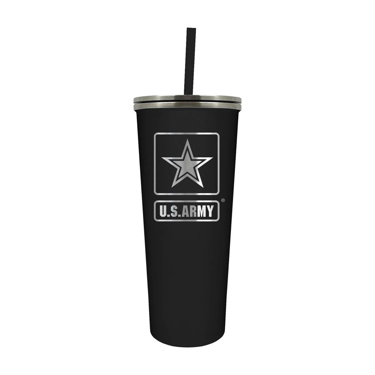 The new U.S. Army skinny tumbler is 18 ounces, vacuum insulated, and powder coated. Features laser etched graphics and include a twist on and off lid and straw. Manufactured by Great American Products.