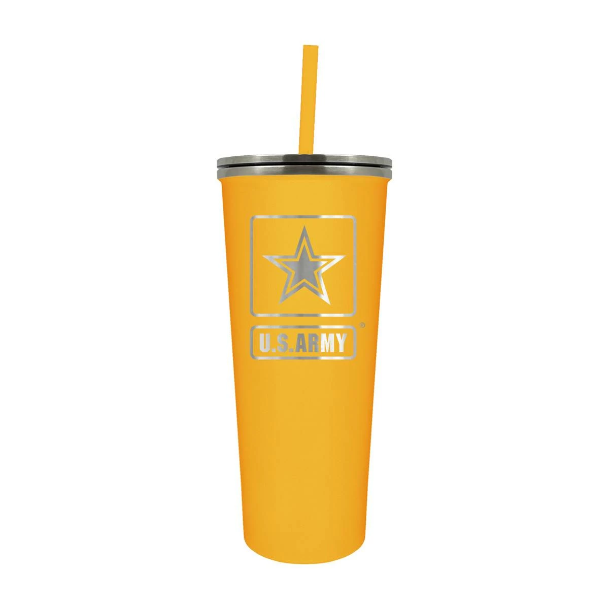The U.S. Army new skinny tumbler is 18 ounces, vacuum insulated, and powder coated. Features laser etched graphics and include a twist on and off lid and straw. Manufactured by Great American Products.