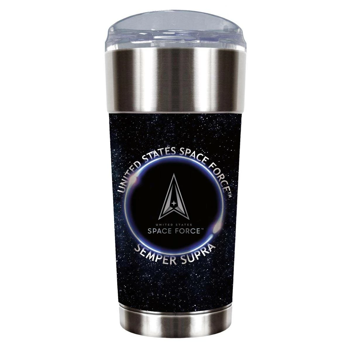The 24-ounce eagle tumbler is vacuum insulated and features 360 graphics. Includes acrylic lid. Manufactured by Great American Products.