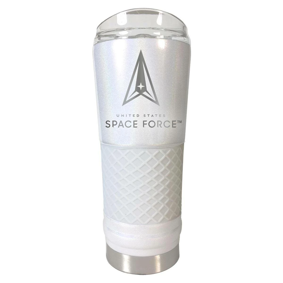 The 24-ounce opal draft tumbler is powder coated, vacuum insulated, and features laser etched graphics. Includes acrylic lid and silicone grip. Manufactured by Great American Products.