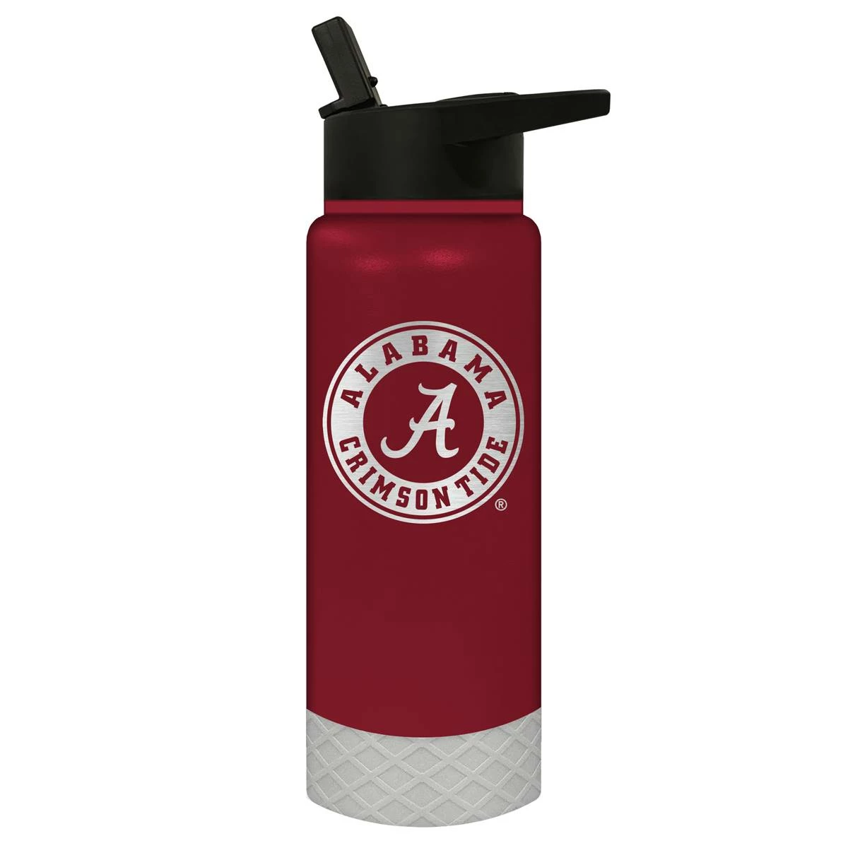 This Great American Products 24-ounce Jr. Alabama Crimson Tide water bottle comes in team colors so you can show your team pride wherever you go. It is made of vacuum insulated stainless steel with a coordinating silicone base and laser etched team graphics.