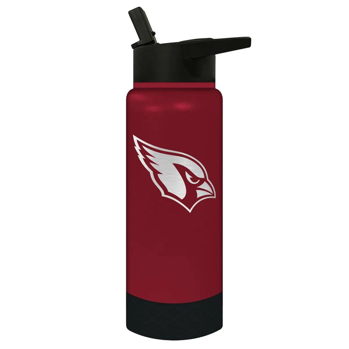 This Great American Products 24-ounce Jr. Arizona Cardinals Water Bottle comes in team colors so you can show your team pride wherever you go. It is made of vacuum insulated stainless steel with a coordinating silicone base and laser etched team graphics.