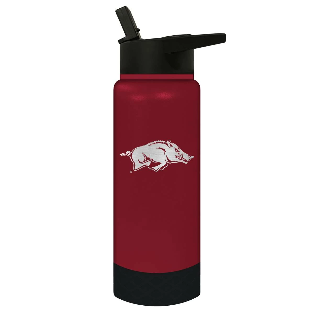 This Great American Products 24-ounce Jr. Arkansas Razorbacks water bottle comes in team colors so you can show your team pride wherever you go. It is made of vacuum insulated stainless steel with a coordinating silicone base and laser etched team graphics.