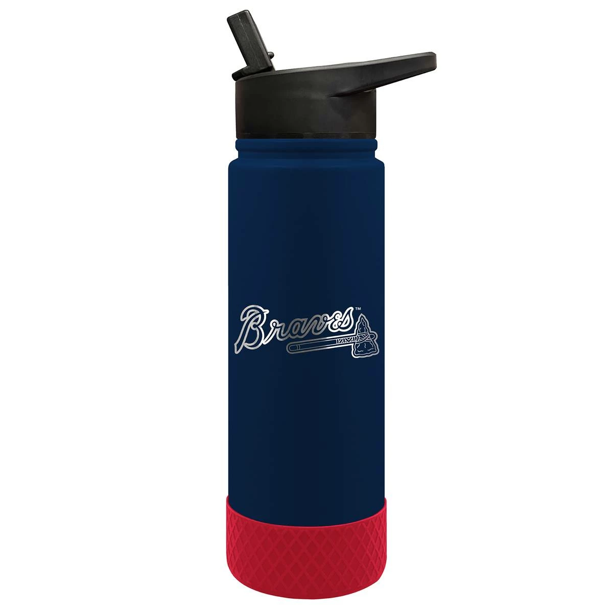 This Great American Products 24-ounce Jr. Atlanta Braves water bottle comes in team colors so you can show your team pride wherever you go. It is made of vacuum insulated stainless steel with a coordinating silicone base and laser etched team graphics.