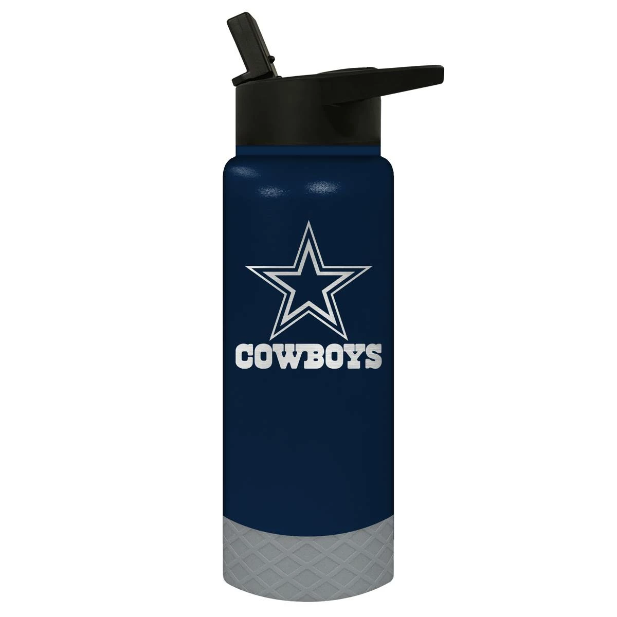 This Great American Products 24-ounce Jr. Dallas Cowboys water bottle comes in team colors so you can show your team pride wherever you go. It is made of vacuum insulated stainless steel with a coordinating silicone base and laser etched team graphics.