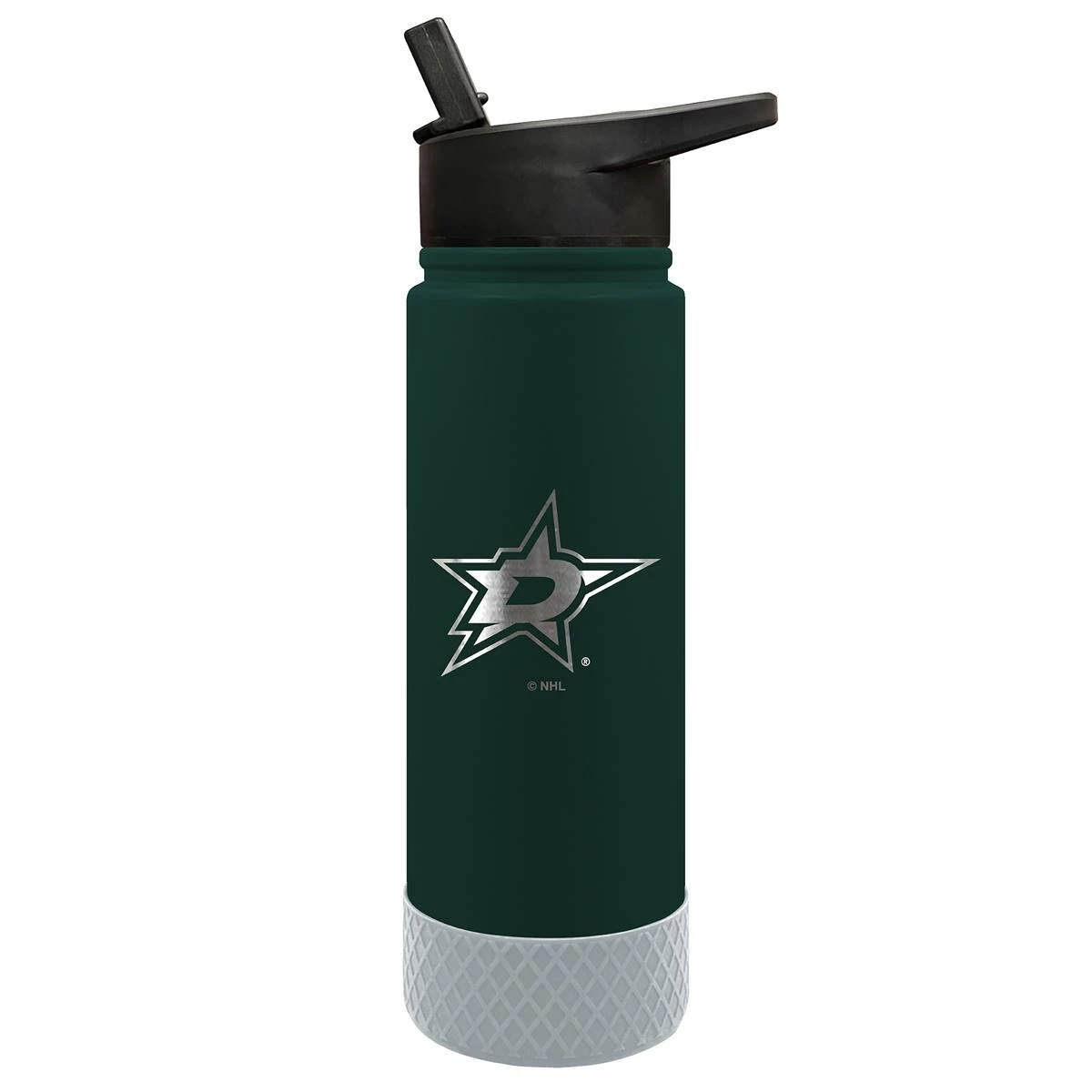 This Great American Products 24-ounce Jr. Dallas Stars water bottle comes in team colors so you can show your team pride wherever you go. It is made of vacuum insulated stainless steel with a coordinating silicone base and laser etched team graphics.
