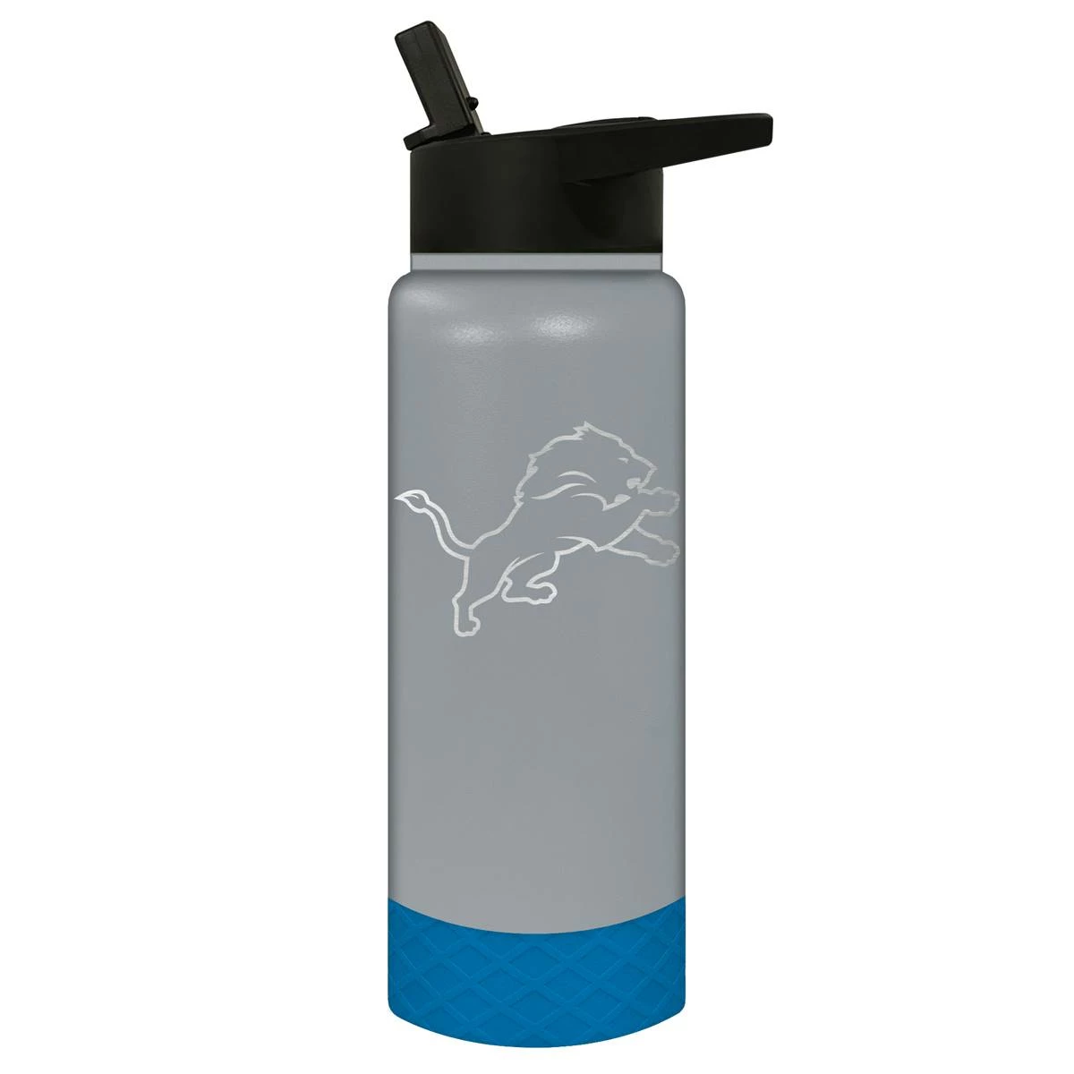 This Great American Products 24-ounce Jr. Detroit Lions water bottle comes in team colors so you can show your team pride wherever you go. It is made of vacuum insulated stainless steel with a coordinating silicone base and laser etched team graphics.