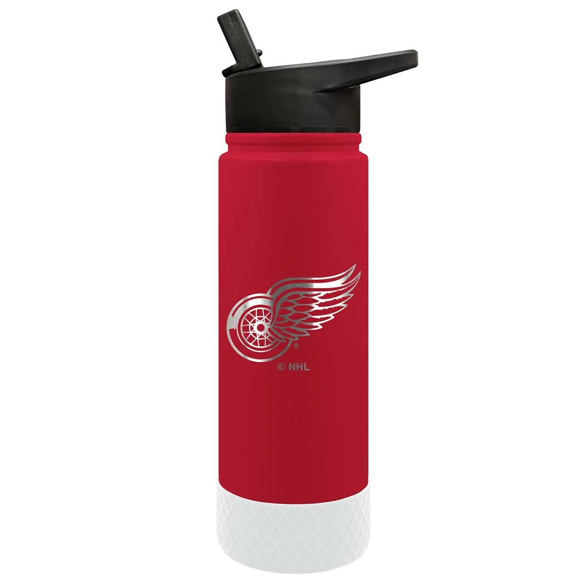 This Great American Products 24-ounce Jr. Detroit Redwings water bottle comes in team colors so you can show your team pride wherever you go. It is made of vacuum insulated stainless steel with a coordinating silicone base and laser etched team graphics.