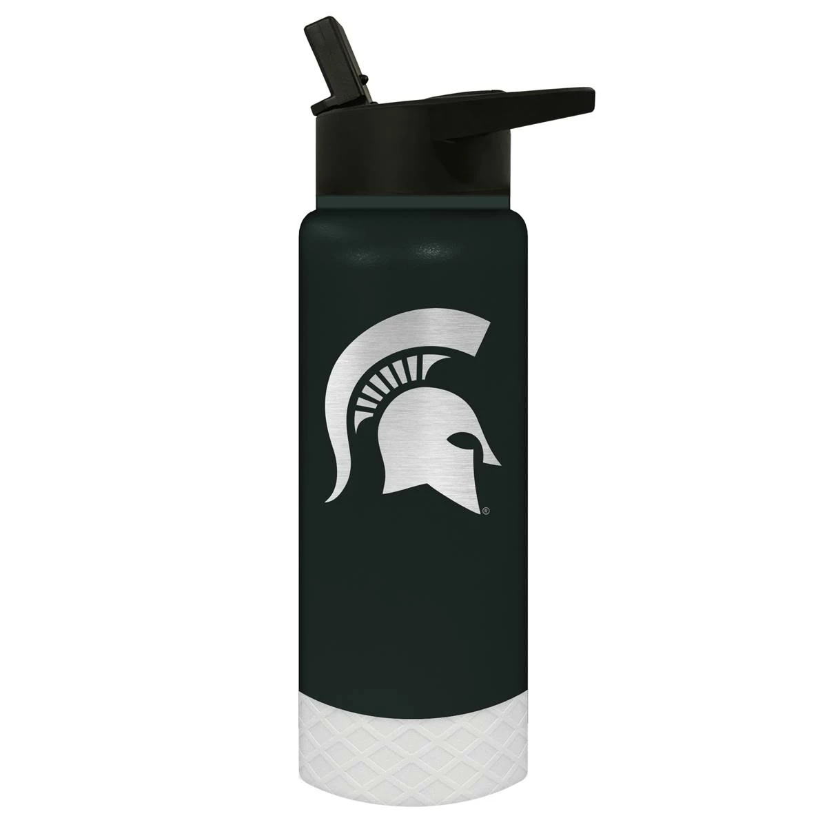 This Great American Products 24-ounce Jr. Michigan State Spartans water bottle comes in team colors so you can show your team pride wherever you go. It is made of vacuum insulated stainless steel with a coordinating silicone base and laser etched team graphics.