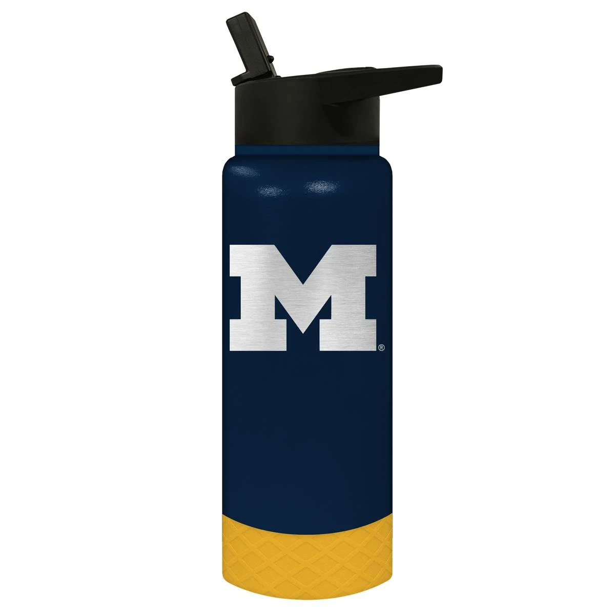 This Great American Products 24-ounce Jr. Michigan Wolverines water bottle comes in team colors so you can show your team pride wherever you go. It is made of vacuum insulated stainless steel with a coordinating silicone base and laser etched team graphics.