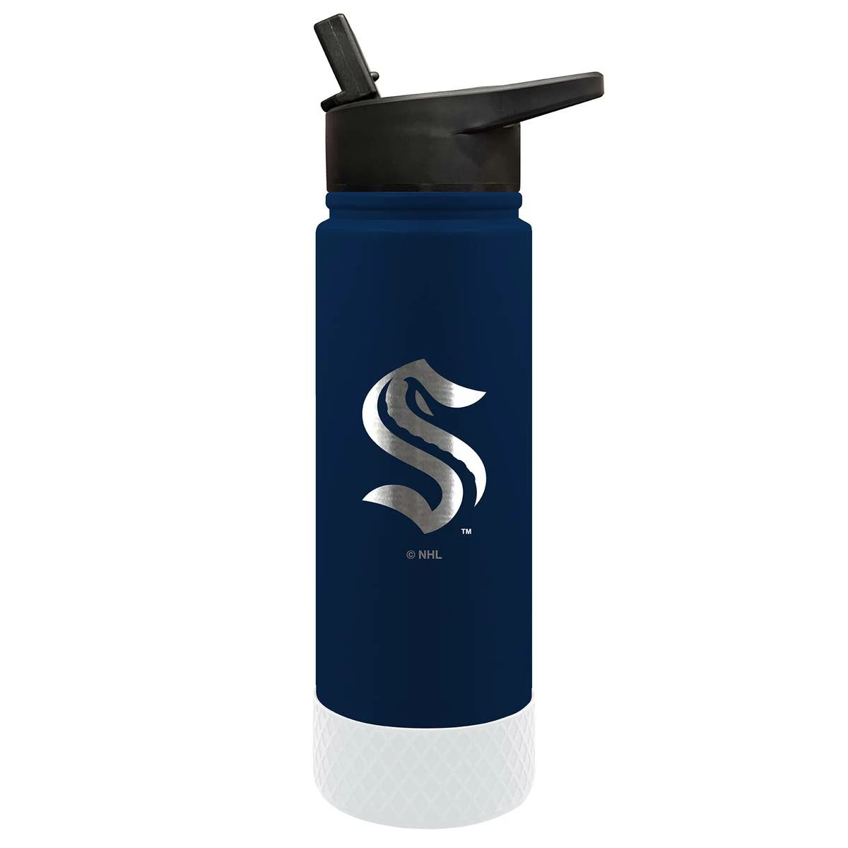 This Great American Products 24-ounce Jr. Seattle Kraken water bottle comes in team colors so you can show your team pride wherever you go. It is made of vacuum insulated stainless steel with a coordinating silicone base and laser etched team graphics.