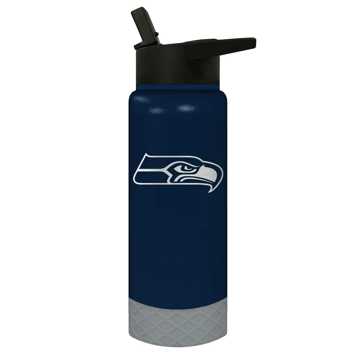 This Great American Products 24-ounce Jr. Seattle Seahawks water bottle comes in team colors so you can show your team pride wherever you go. It is made of vacuum insulated stainless steel with a coordinating silicone base and laser etched team graphics.