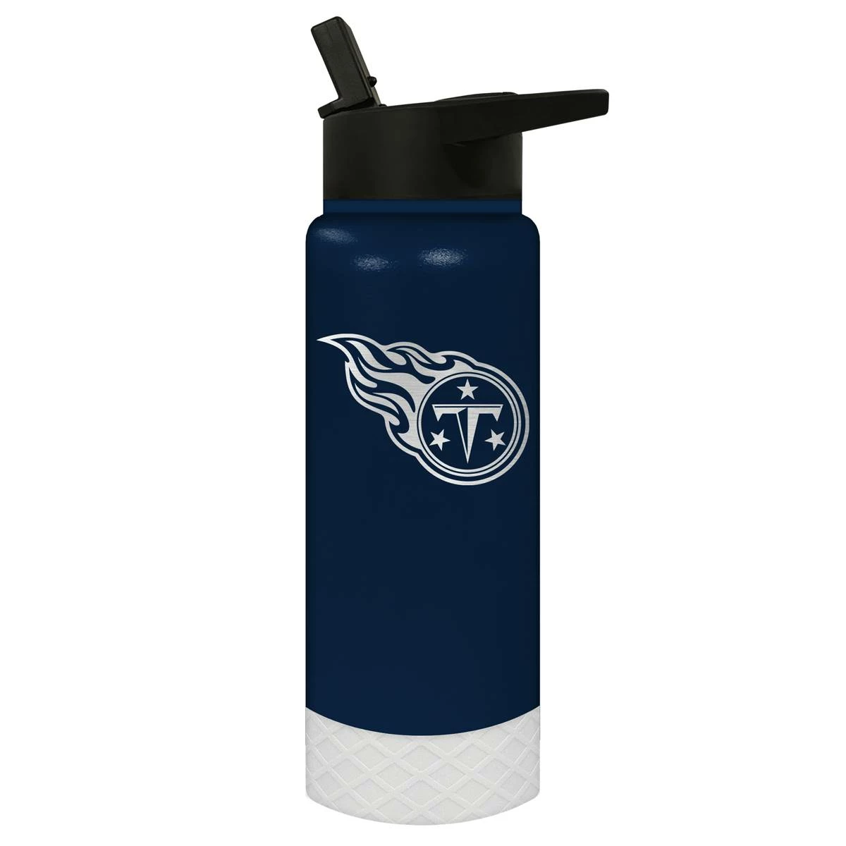 This Great American Products 24-ounce Jr. Tennessee Titans water bottle comes in team colors so you can show your team pride wherever you go. It is made of vacuum insulated stainless steel with a coordinating silicone base and laser etched team graphics.
