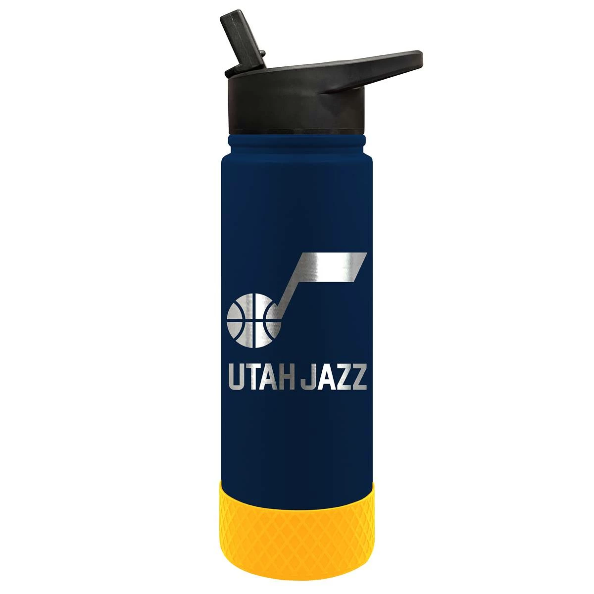 This Great American Products 24-ounce Jr. Utah Jazz water bottle comes in team colors so you can show your team pride wherever you go. It is made of vacuum insulated stainless steel with a coordinating silicone base and laser etched team graphics.