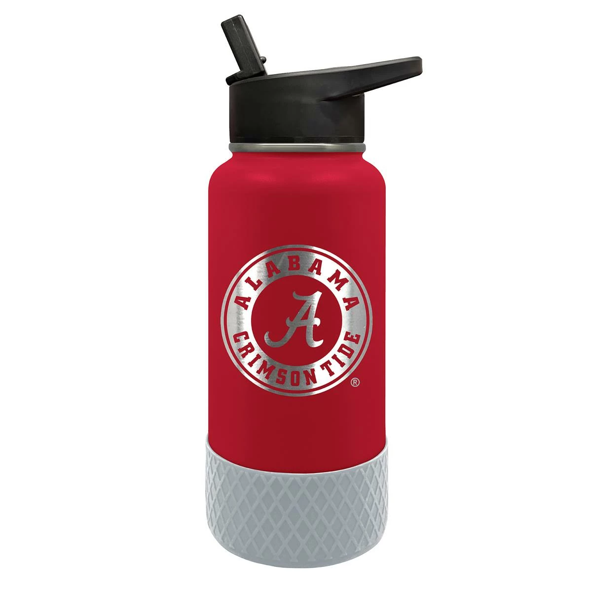 This Great American Products 32-ounce Alabama Crimson Tide water bottle comes in team colors so you can show your team pride wherever you go. It is made of vacuum insulated stainless steel with a coordinating silicone base and laser etched team graphics.