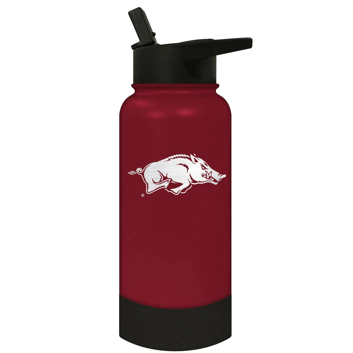 This Great American Products 32-ounce Arkansas Razorbacks water bottle comes in team colors so you can show your team pride wherever you go. It is made of vacuum insulated stainless steel with a coordinating silicone base and laser etched team graphics.