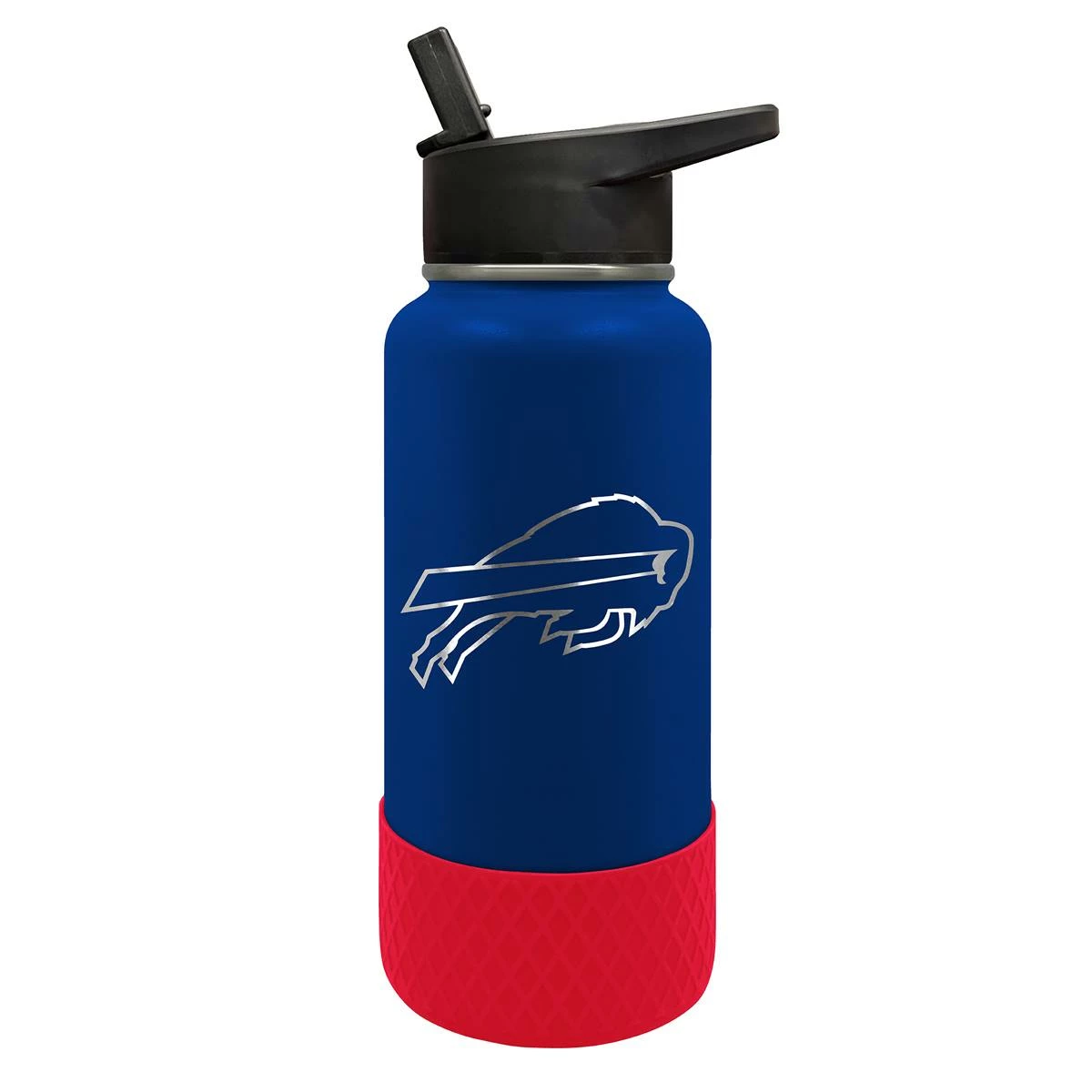 This Great American Products 32-ounce Buffalo Bills water bottle comes in team colors so you can show your team pride wherever you go. It is made of vacuum insulated stainless steel with a coordinating silicone base and laser etched team graphics.