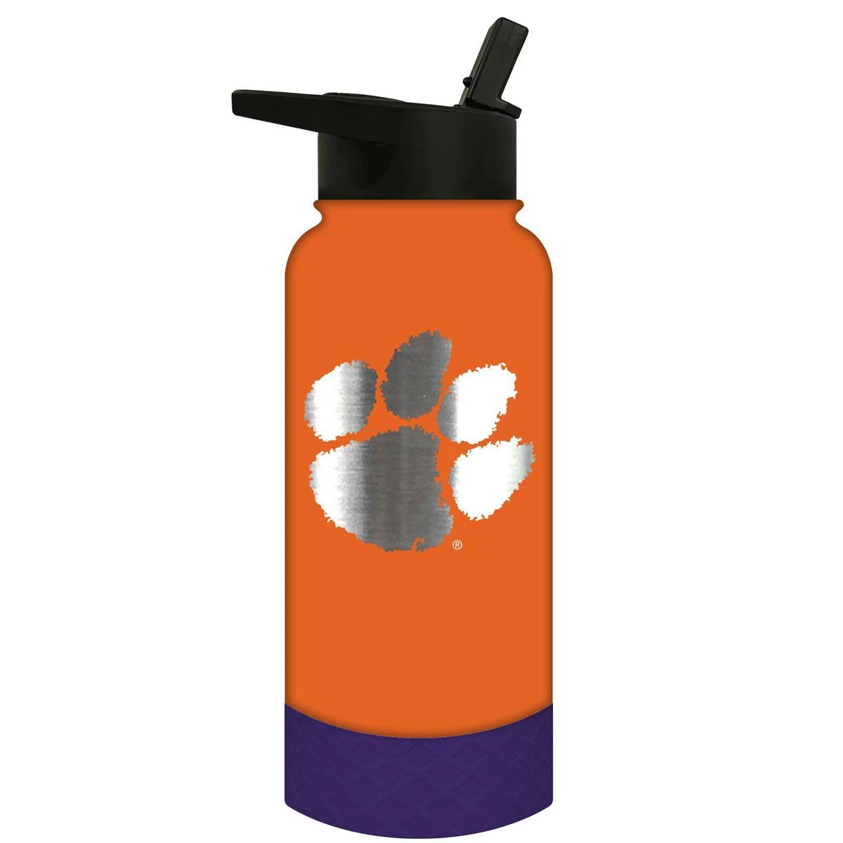 This Great American Products 32-ounce Clemson Tigers water bottle comes in team colors so you can show your team pride wherever you go. It is made of vacuum insulated stainless steel with a coordinating silicone base and laser etched team graphics.